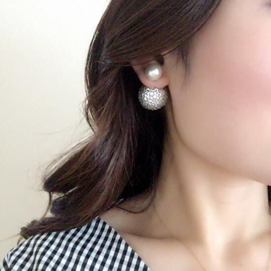 スワロフスキーglobe&コットンパールのダブルピアス(Big version)