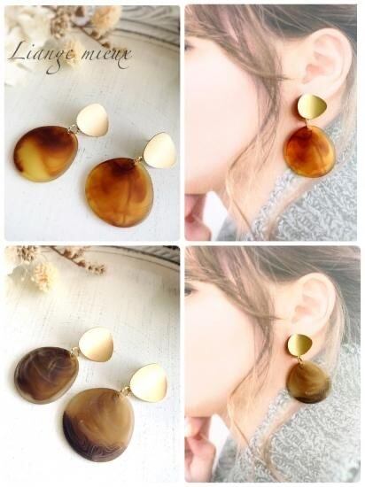 マットゴールドプレート&マーブルプレートのピアス&イヤリング(グレージュブラウン)