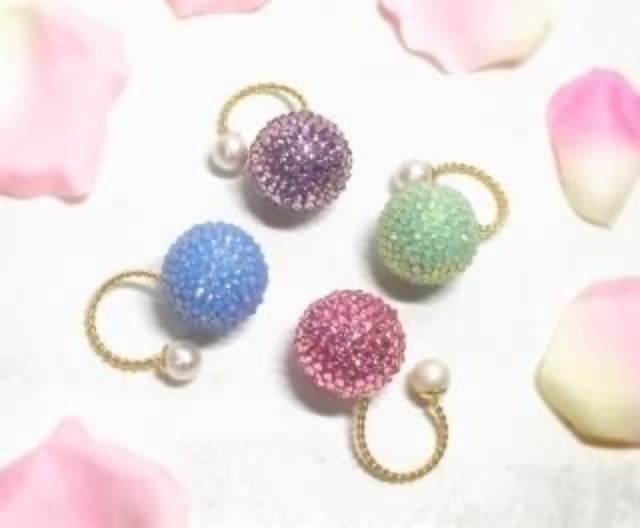 【globeライン】のコットンパール付きフォークリングです。 『globe』とは? 1.地球 2.天体(惑星、太陽など) 3.地球儀、天体儀 4.球体、球形のもの (出展:goo辞書より) この1と4の意味をリンクさせて誕生したネーミングです。 『地球』という意味合いがあり その地球を思わせる『球体』がコンセプトのデザイン このglobeシリーズを身に着ける度に 日々私たちを生かしてくれている『地球』に 「ありがとう」という感謝の想いを抱いてほしい。 そんな作家の希望も込めたアクセサリーラインです。 見る人の目を惹くBIGサイズのglobeには スワロフスキーをびっしりと敷き詰めました。 インパクトのあるそのサイズ感は コーディネートのアクセントにも重宝します。 指を挟んでお向かいには、品のあるコットンパールをあしらった ノーブルで大人可愛いフォークリング。 BIGサイズのスワロフスキーと、小さなコットンパールのコントラストもポイントです。 人気のコットンパールを入れることで、程よく上品さを格上げしています。 どんなお洋服のコーディネートにも相性の良いベーシックなカラーと コーディネートのアクセントになるビビットなカラーまで 幅広いカラーバリエーションをご用意いたしました。 リングのアーム部分にはツイストデザインが施されているため、 指なじみが良いのも嬉しいポイント。 パーティーシーンや、日常のカジュアルコーデ、 モノトーンコーデに合わせて身につけるなど 様々なシーンでお楽しみくださいませ。 人差し指や中指などの、比較的太めの指にピッタリで ゆとりのある11号サイズとなっております。 サイズが限定されずある程度のサイズ調整も可能なので、 ギフト用としても大変お喜びいただいております。 ストーンは全て正規スワロフスキーエレメントを使用しております。 【利用シーン、利用方法】 フリーサイズなので、気分によってお好きな指に着けられます。 指のサイズに合わせて、ある程度ご自身で調整できる造りになっております。 ※サイズ調節をする際はゆっくり力を加えてください。 また、サイズ調節を何度も繰り返したり、 無理な曲げ伸ばしは破損やメッキが剥がれる原因になりますのでご注意ください。 【サイズ】 ・リング:11号(フリーサイズ※人差し指や中指への着用を推奨しております) ・スワロglobe部分:直径約2cm ・コットンパール:直径8mm ■ お手入れ/取り扱い注意事項 ・直射日光を避け、湿気の少ない場所で保管してください。 ・水や化粧品が付着した場合は、柔らかい布で優しく拭き取ることをおすすめします。 ・強い衝撃や摩擦を与えないようご注意ください。 ■ その他の情報や注意事項 ・手作りのため、若干のサイズや形状に差異が生じる場合があります。 ・商品の画像と実物の色合いは、モニターの設定により異なることがあります。